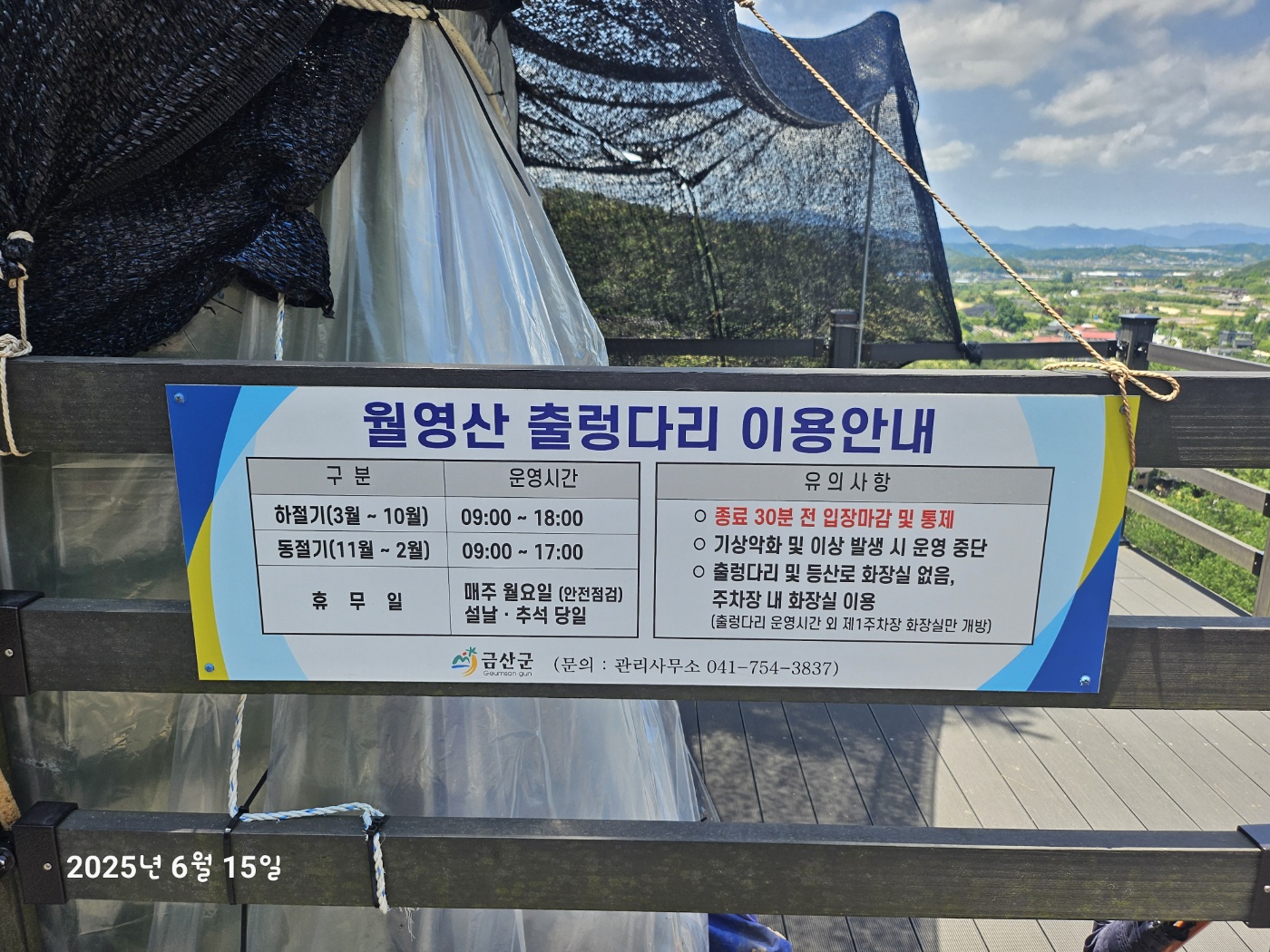 금산에는 월영산 출렁다리가 있다. 월영산과 부엉산을 잇는 길이가 275m의 무주탑 출렁다리로 금강 상류의 아름다운 수변경관을 한눈에 조망할 수 있는 곳이다.