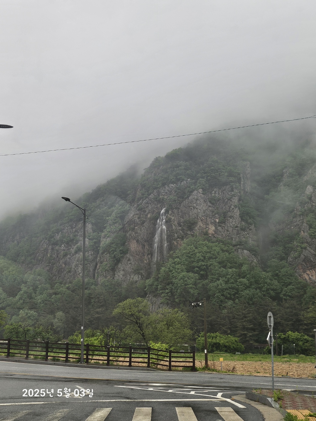 봄에는 벚꽃길이 쭉~이어지는 멋진 도로를 지나, 물안개가 내려앉은 산아래 폭포수가 떨어지는 모습도 볼 수 있다.